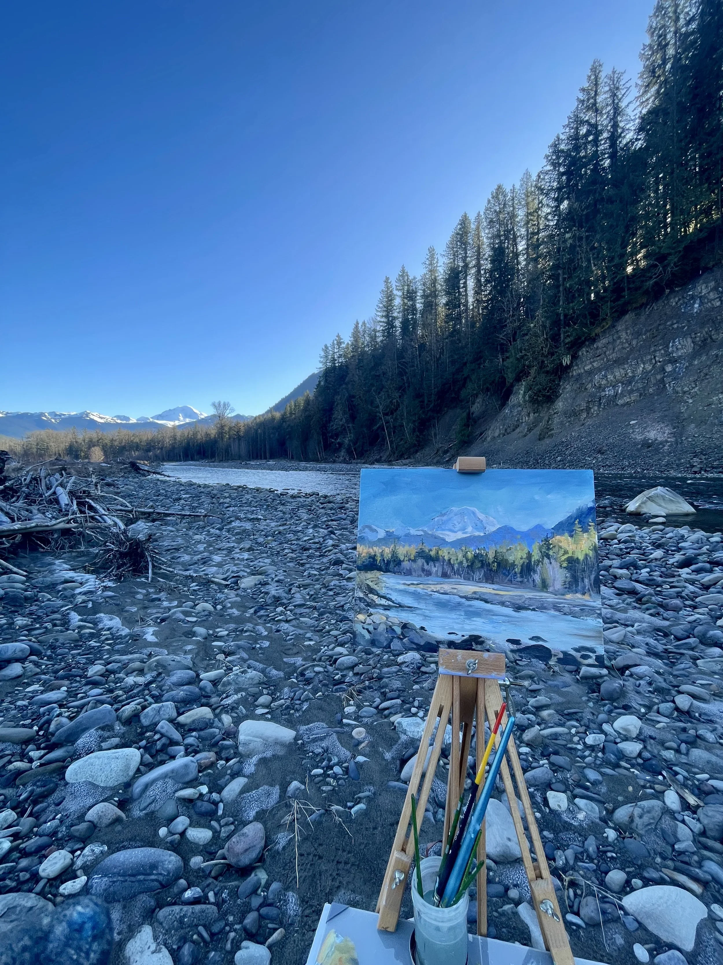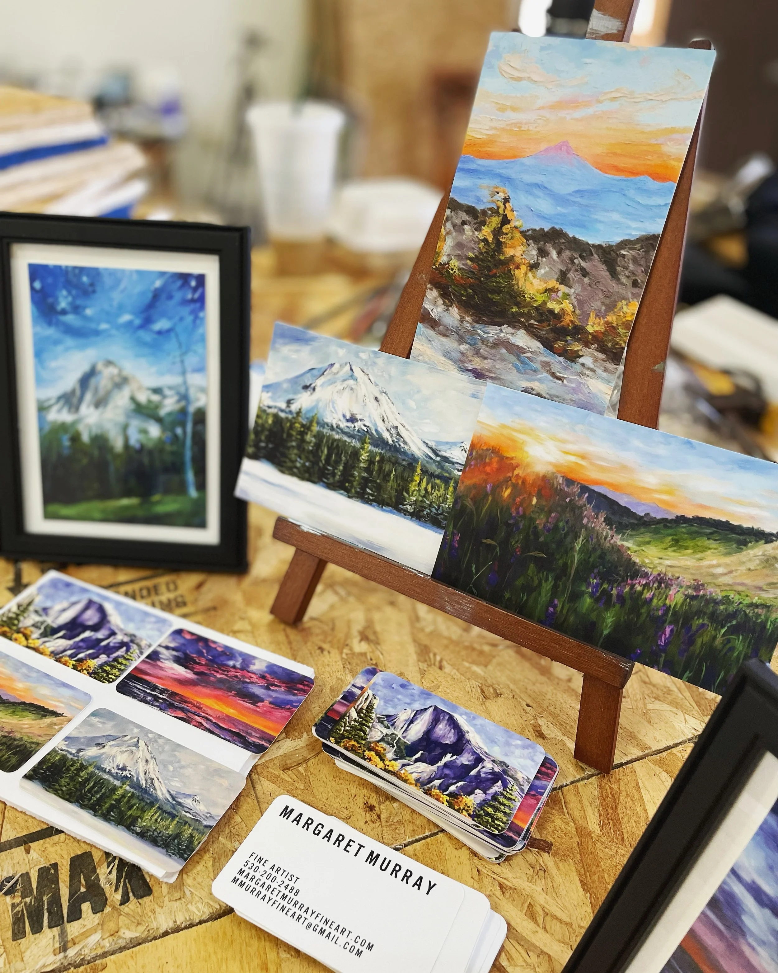 Margaret Murray is a West Coast muralist, landscape painter, and Art Educator. Her individual work focuses on intertwining impressionism, realism, and bright flares of color in the landscapes she explores while hiking and adventuring. She seeks to honor and appreciate the natural wildernesses of the world, paying special attention to the region between the Cascades and the Pacific Coast.